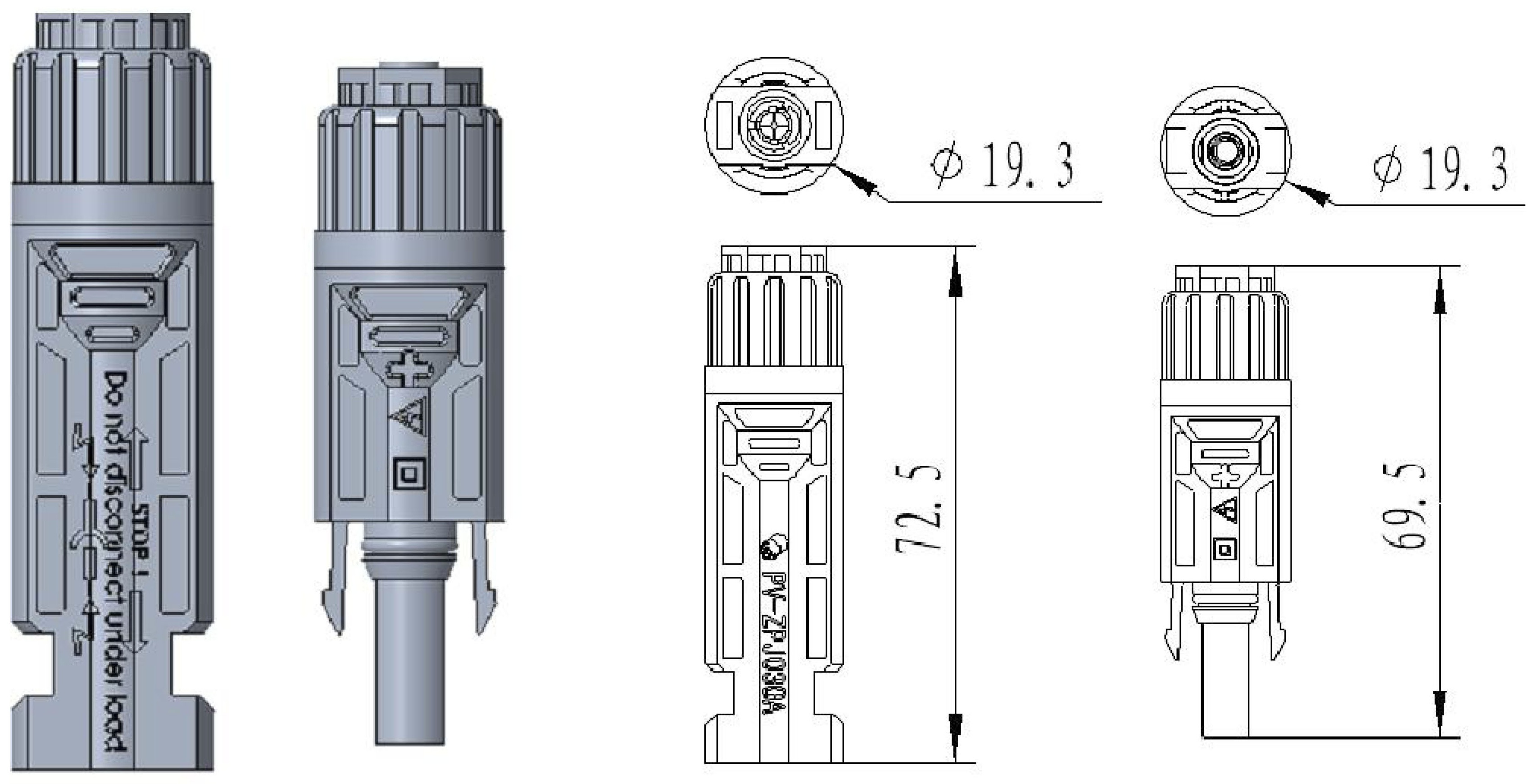Cable diameter 4.0 mm², lengths (-) 200 mm and (+) 300 mm |