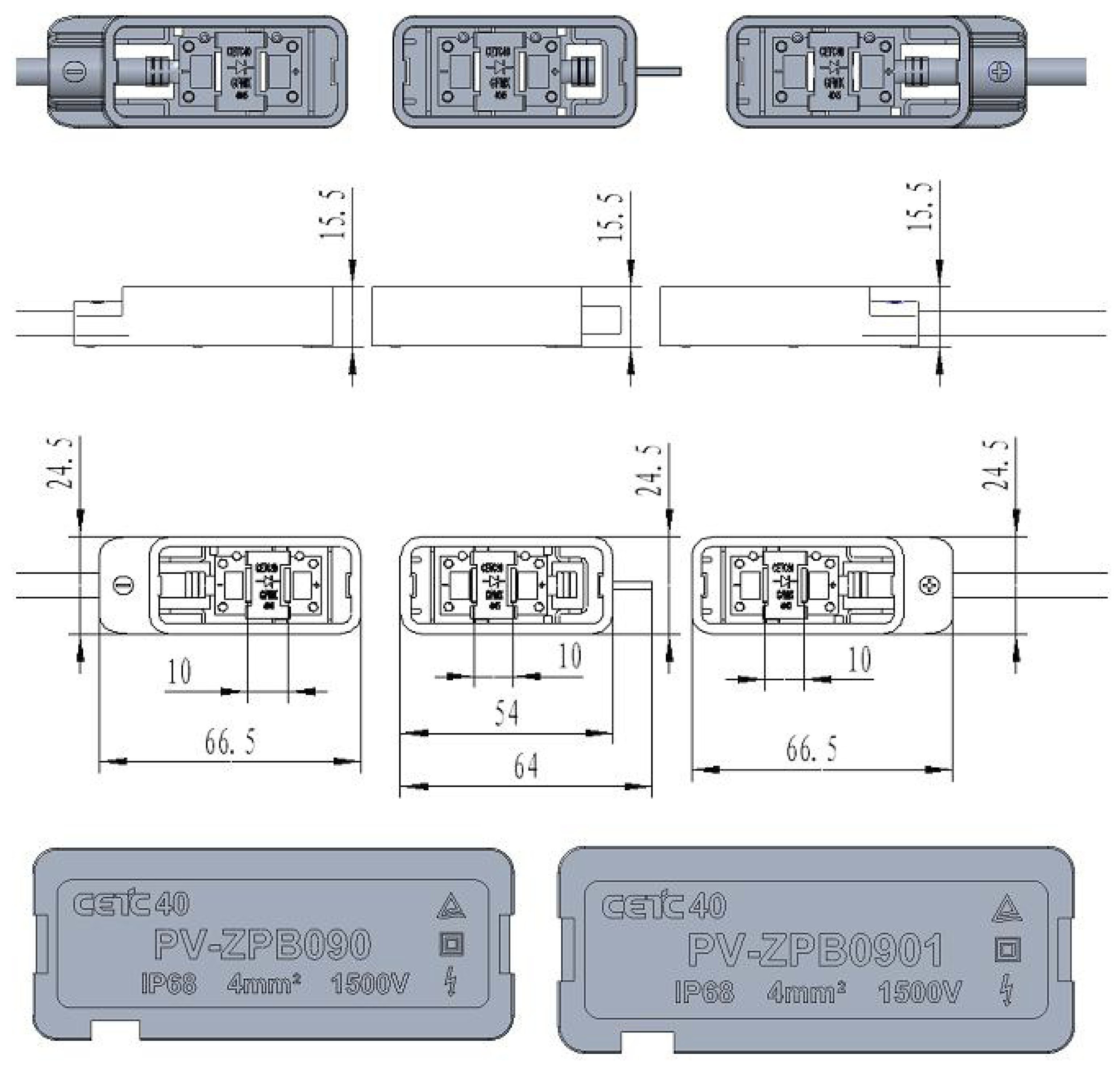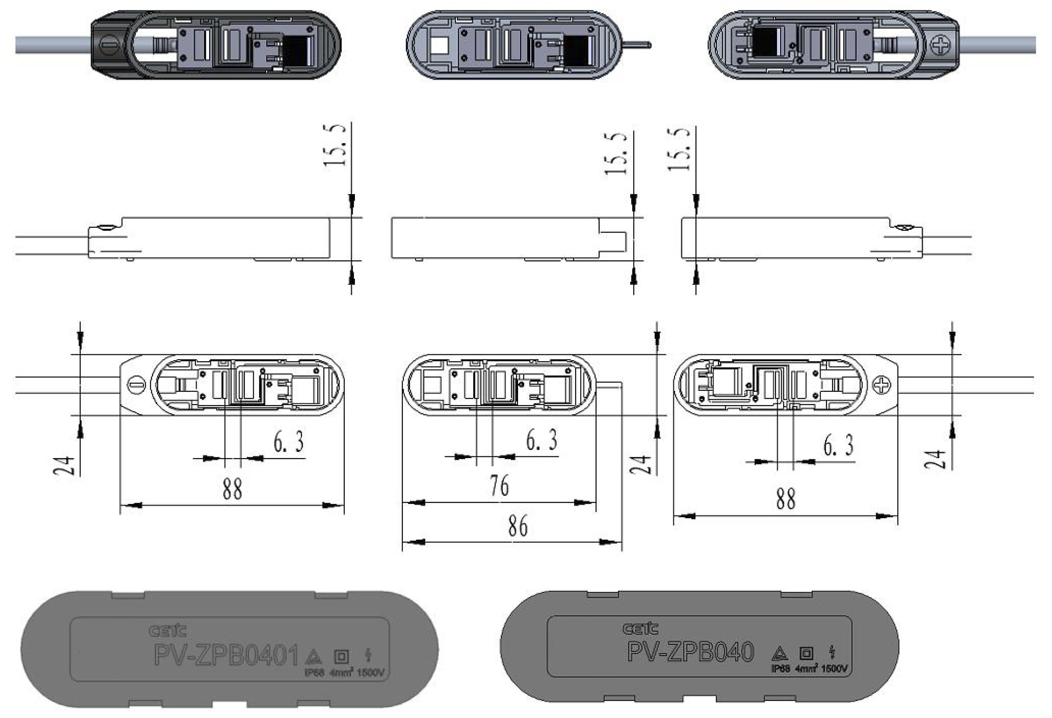 1. PV-ZPB040x Series Trio PV Junction Box: 3-Split potting junction box, suitable for bifacial double-glass solar panels.